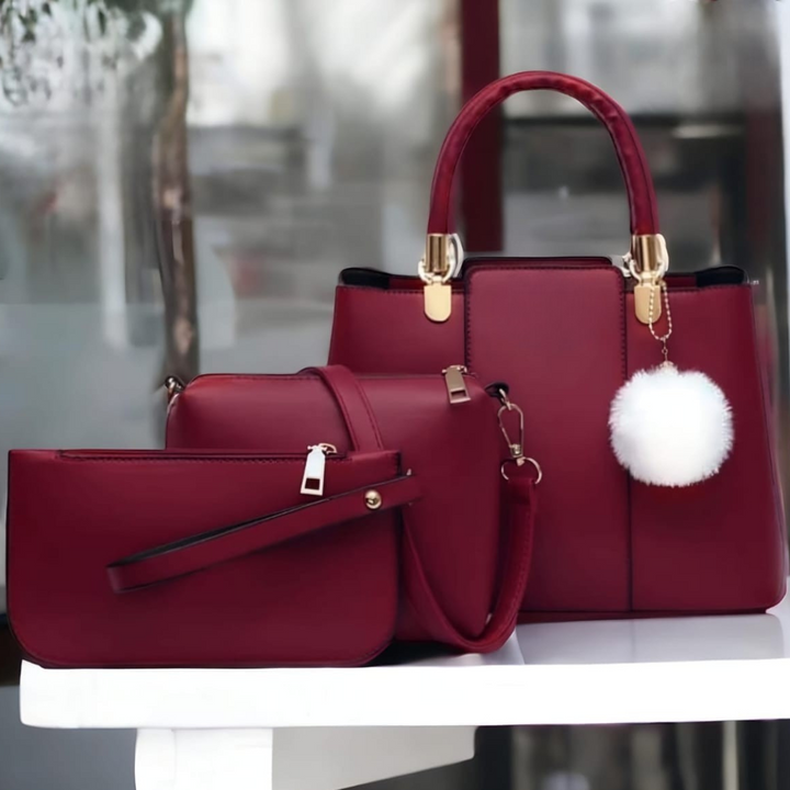 🎀 Elegant Quilted 3Pcs Shoulder Bag With Keychain 🎀